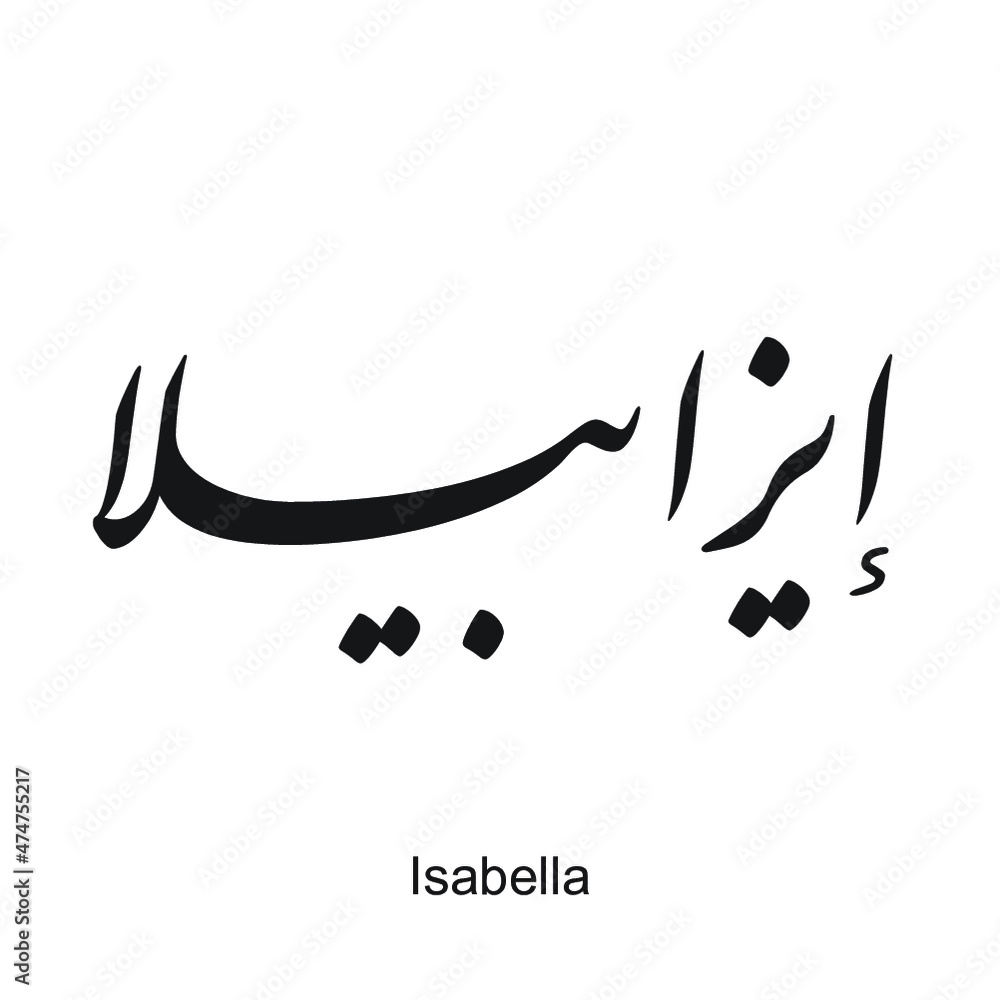 Isabella English Name Is Written In Arabic Black And White Arabic Calligraphy Tattoo English Name Eps Vector File Nastaligh Font Stock Vector Adobe Stock